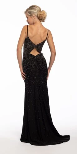 Asymmetrical One Shoulder Rhinestone Scuba Dress With Side Slit