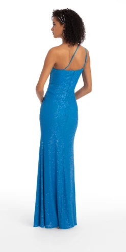 Bring the party to your next night out in this fun, flirty asymmetrical sequin strappy one-shoulder dress! This column silhouette will hug your curves. This style also features a semi open back and side slit. Perfect for prom and wedding guests wanting to make an impression. Show off who you are in this gorgeous sparkly number and take your evening look up a notch!