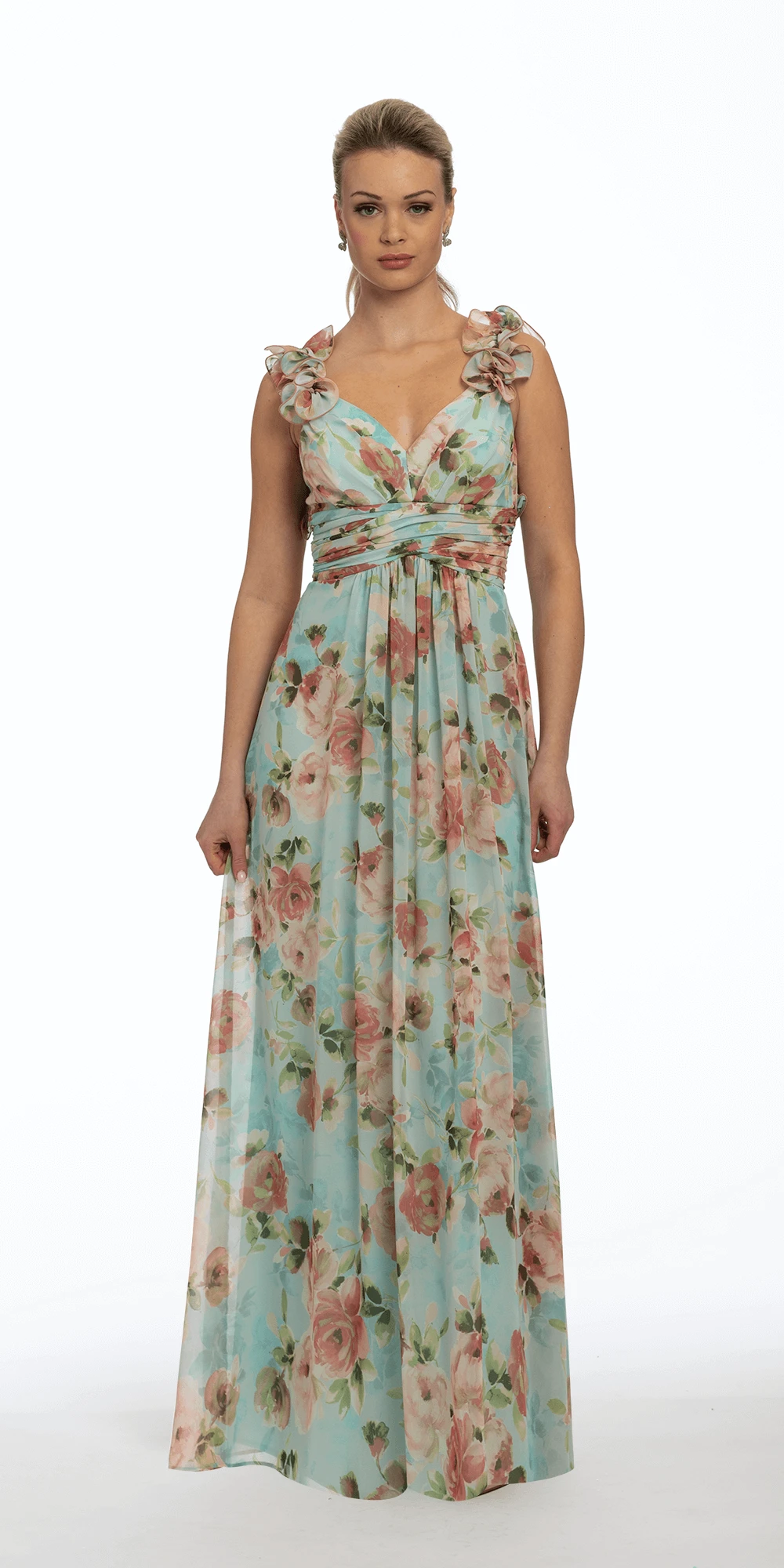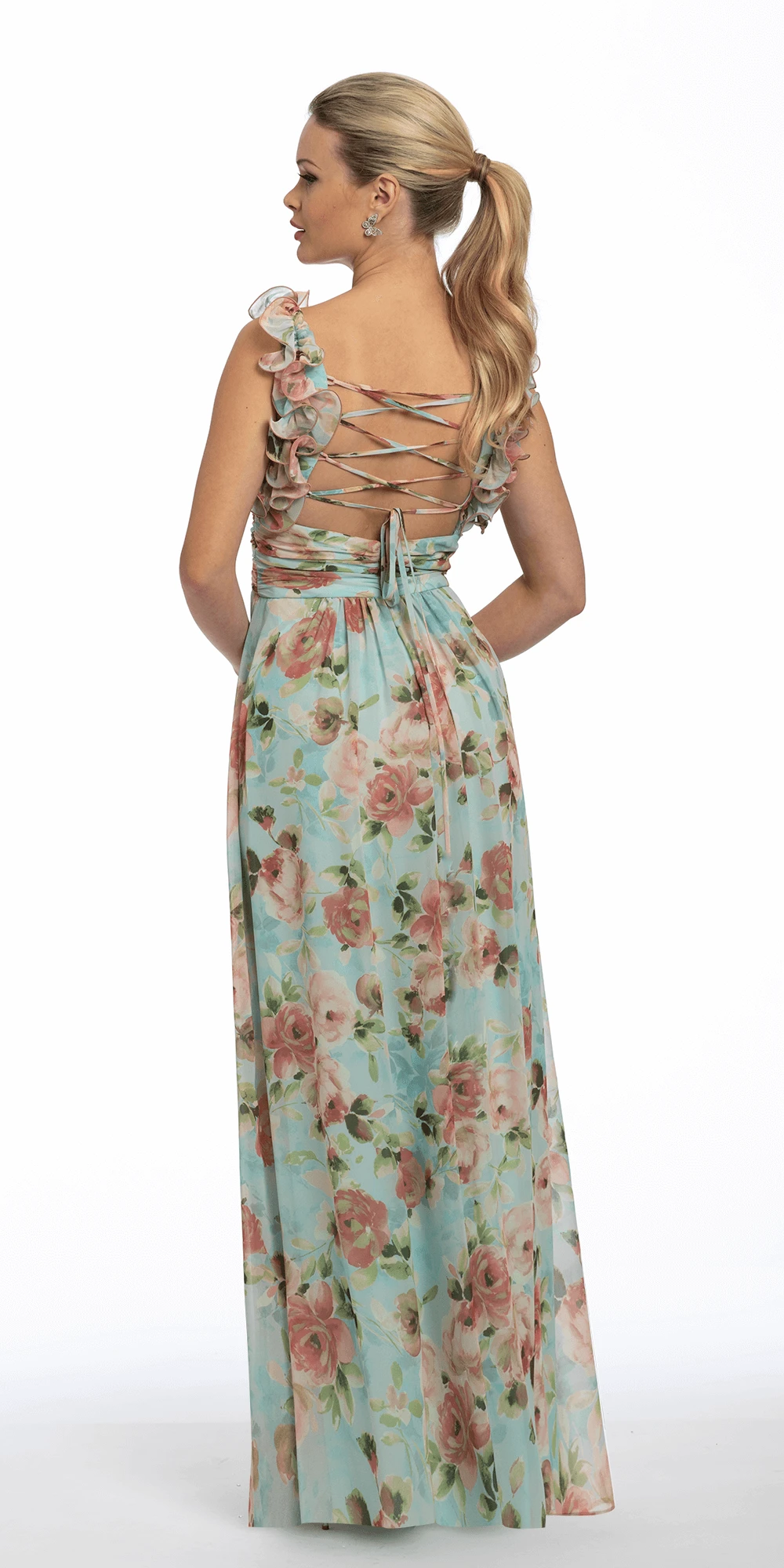 Welcome spring in style with the Lace Up Back Chiffon Print Dress with Ruffle Straps! Light, airy, and perfect for all your special occasions. Featuring a plunging neckline with ruffle straps, rouched bodice, A-Line silhouette, and lace up back brings an element of fun to this stylish design! From garden parties to wedding dates this dress is in style!