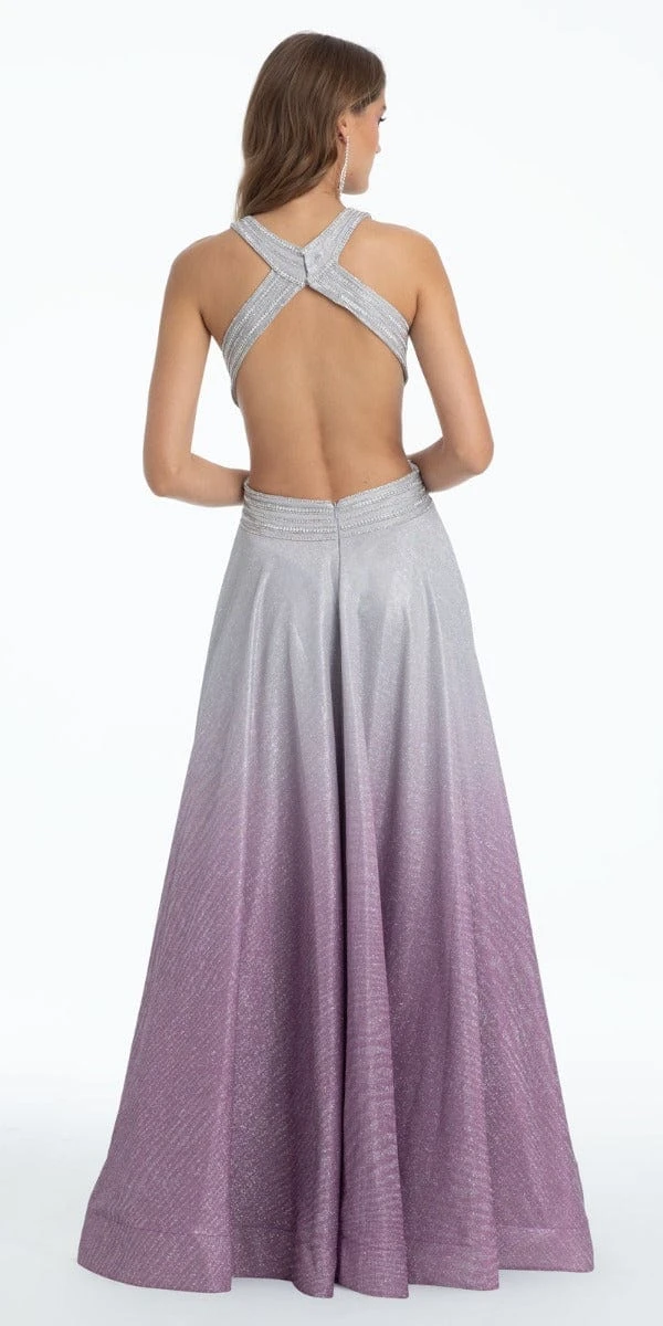 Metallic Ombre Rhinestone Cutout A-Line Dress