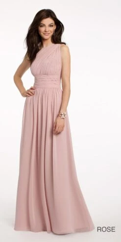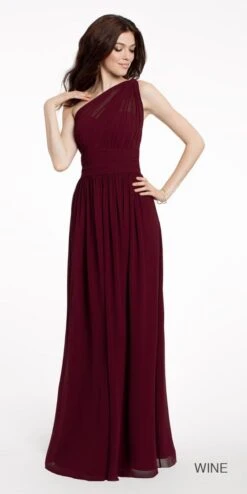 For your next formal evening dress occasion, drape yourself in this gorgeous evening dress! The one shoulder neckline, fitted bodice with waistband, pleated A-line chiffon skirt, and open back with straps make this an effortless party dress. Pair with silver heels, a rhinestone bracelet, and a silver clutch.