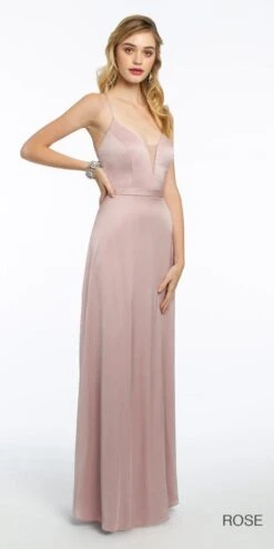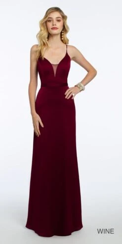 This crepe bridesmaid dress makes a statement! Featuring a plunge illusion neckline, fitted bodice with subtle waistband detail, a mermaid skirt and X open back, the simplicity of this form-fitting gown is enough to captivate the crowd at any wedding celebration. Pair this sleek pick with rhinestone sandals and a satin tulle flower girl dress to complement a beaded bustier sweetheart ball gown wedding dress.