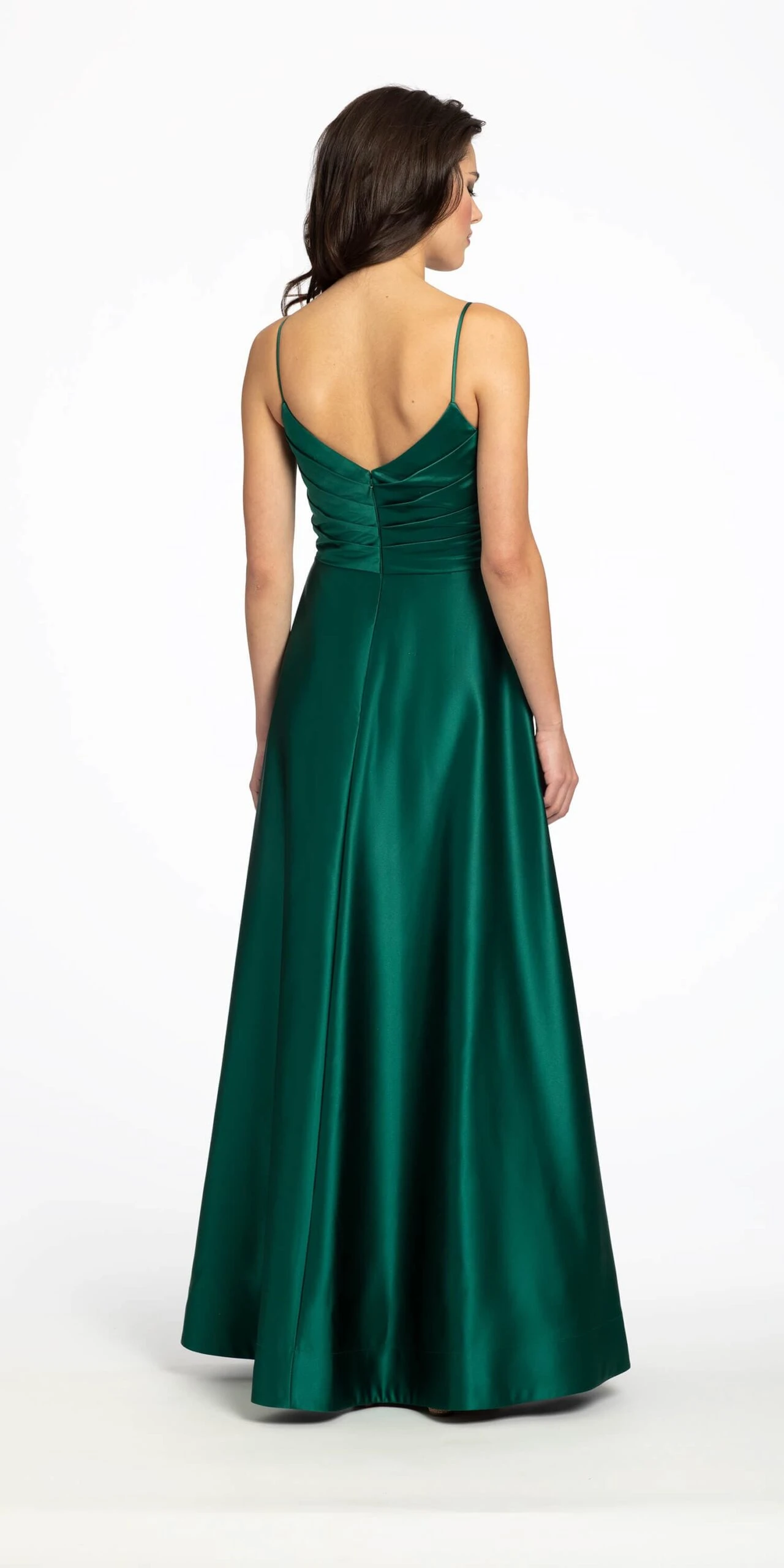 Fall into satin dreams for your bestie’s big day! The perfect fit for your bridal party with its sweetheart neckline, fitted bodice with ruching, satin a-line skirt with pockets, and open back. Have your ladies shine in one of our classic colors of emerald or rose. Pair this style with sparkly accessories to complete the look!Â