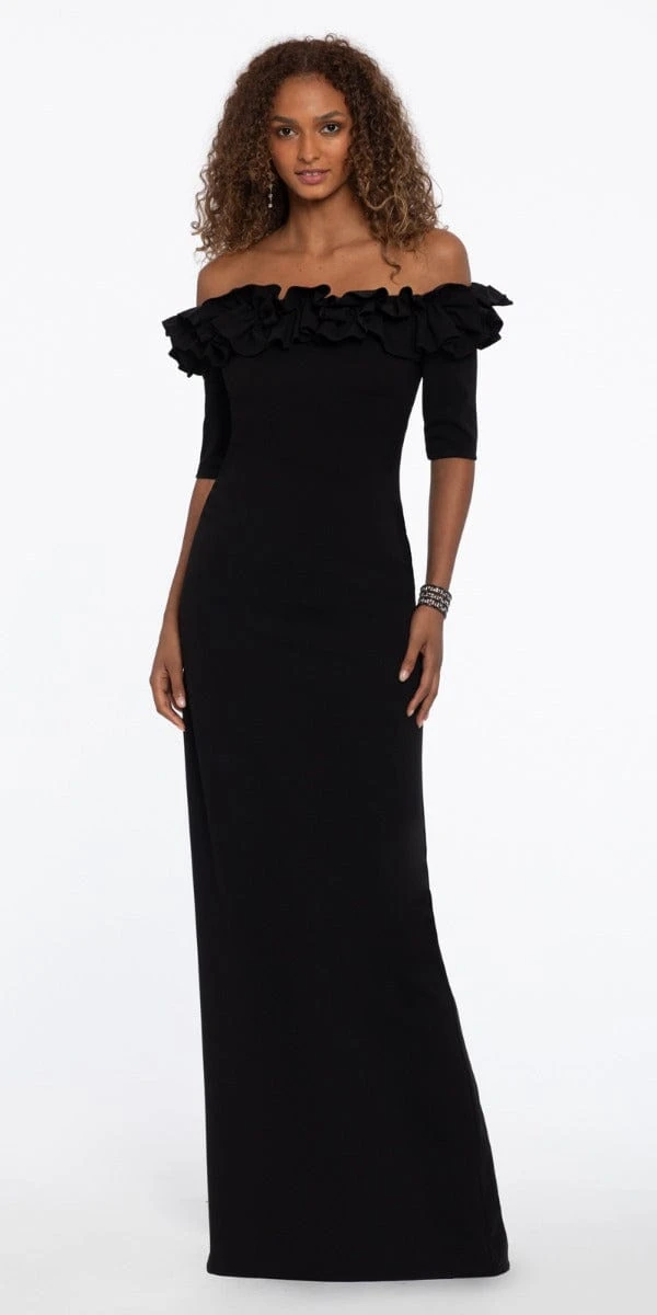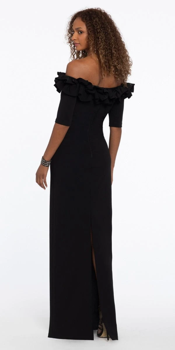 Ruffle Crepe Off The Shoulder Dress With Back Slit