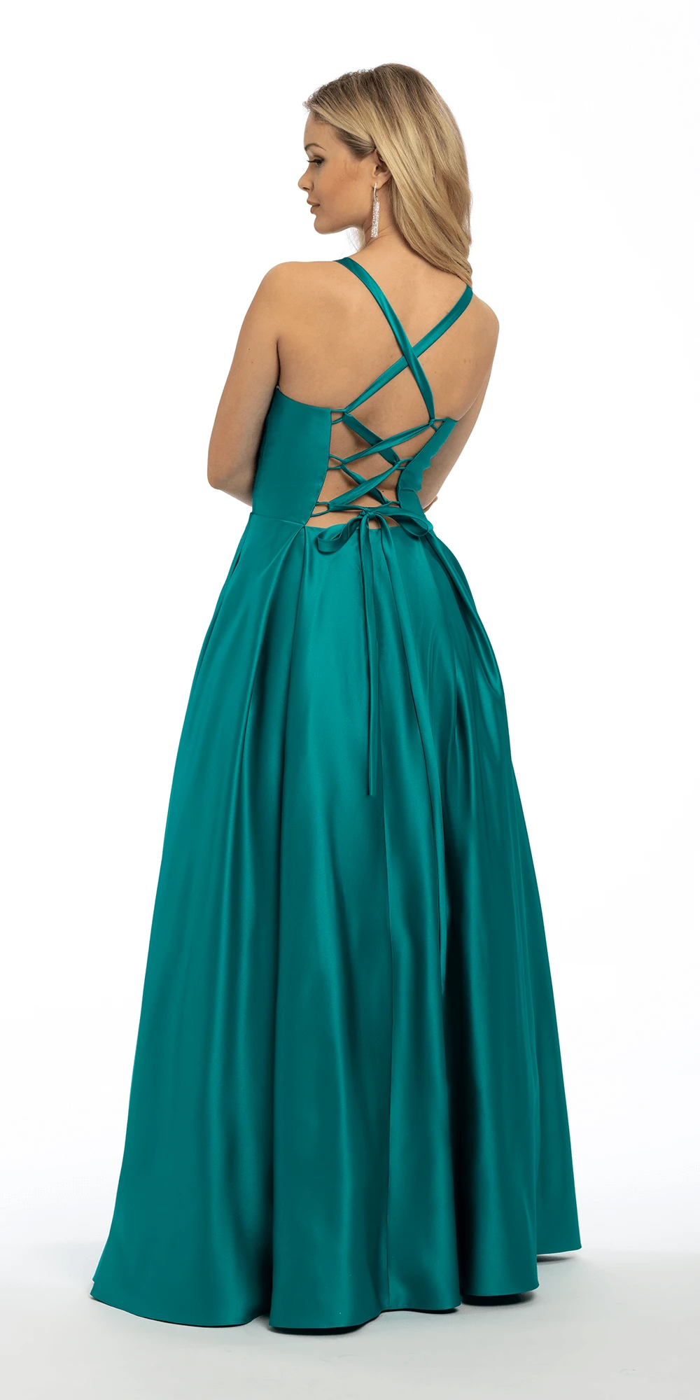Dare to show off your softer side in this stunning Ballgown. This gorgeous teal gown is guaranteed to ensure you look and feel like an elegant princess! The sweetheart neckline is flattering and ensures you flaunt your curves, whilst the fitted bodice ensures all eyes are on you. The box pleated ballgown skirt has pockets, perfect for carrying those must-have accessories . To complete the look, lace up back ties make sure everything stays perfectly in place while you dance the night away.