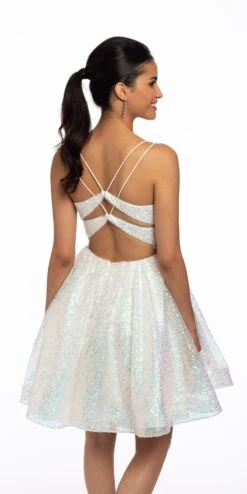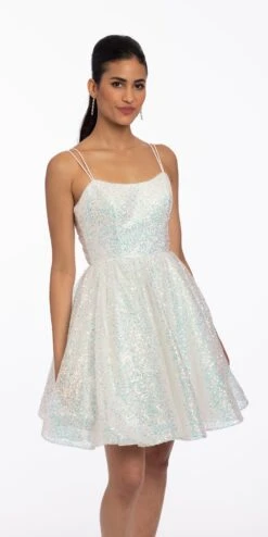 Step into a sequin dream! This dress is bringing all the glitz with its scoop neckline, fitted bodice, flare skirt with sequins, and double back straps. Twirl into your homecoming dance or sweet 16 in this sequin dress.