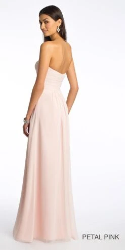 Are you looking for the perfect bridesmaids dresses to compliment your oh so romantic bridal gown? If so, you must have your girls wear this floor-length bridesmaid dress! This gorgeous sleeveless evening dress is complete with a pleated bodice, side pleats and a invisible back zipper! Add on nude heels, a rhinestone ring, and a gold clutch.