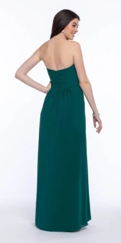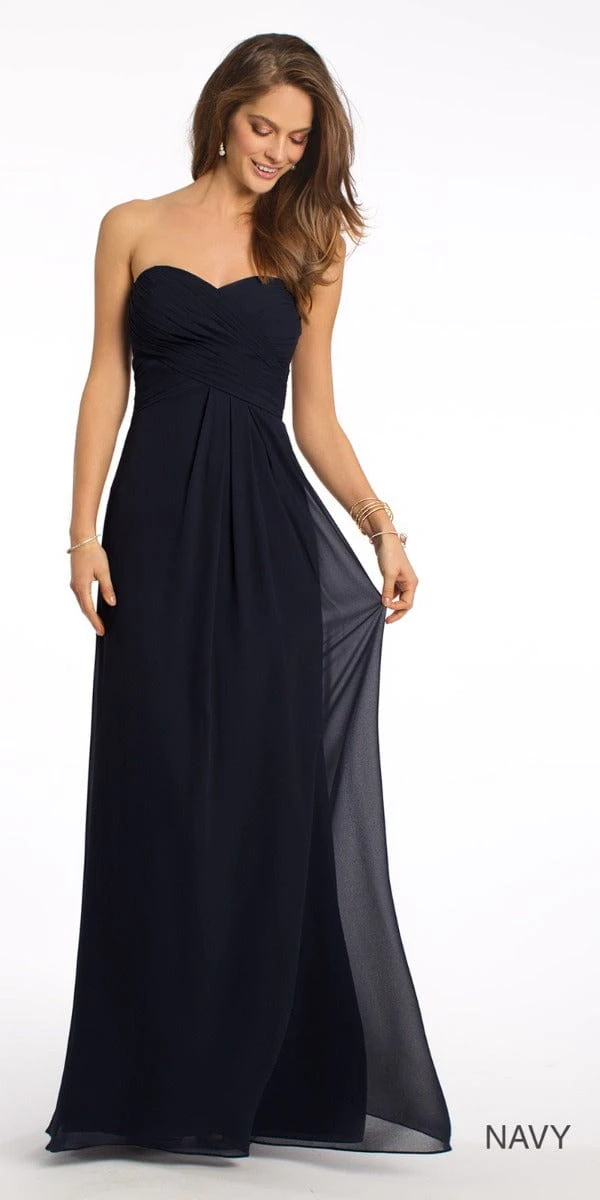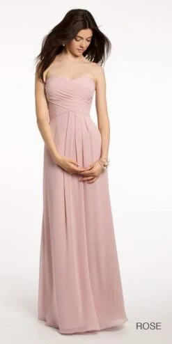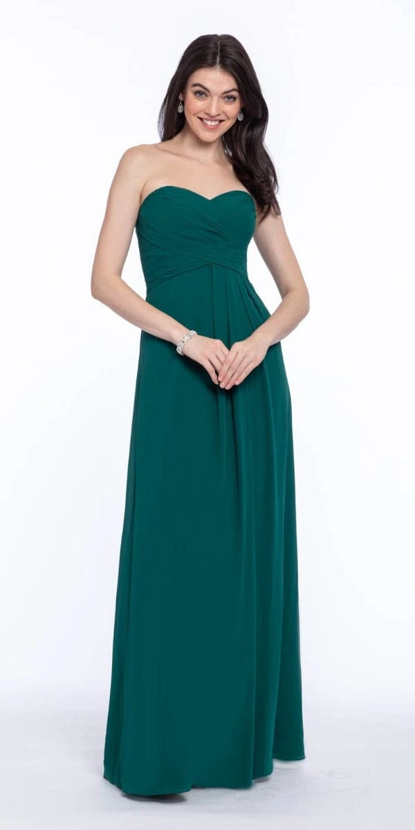 Are you looking for the perfect bridesmaids dresses to compliment your oh so romantic bridal gown? If so, you must have your girls wear this floor-length bridesmaid dress! This gorgeous sleeveless evening dress is complete with a pleated bodice, side pleats and a invisible back zipper! Add on nude heels, a rhinestone ring, and a gold clutch.