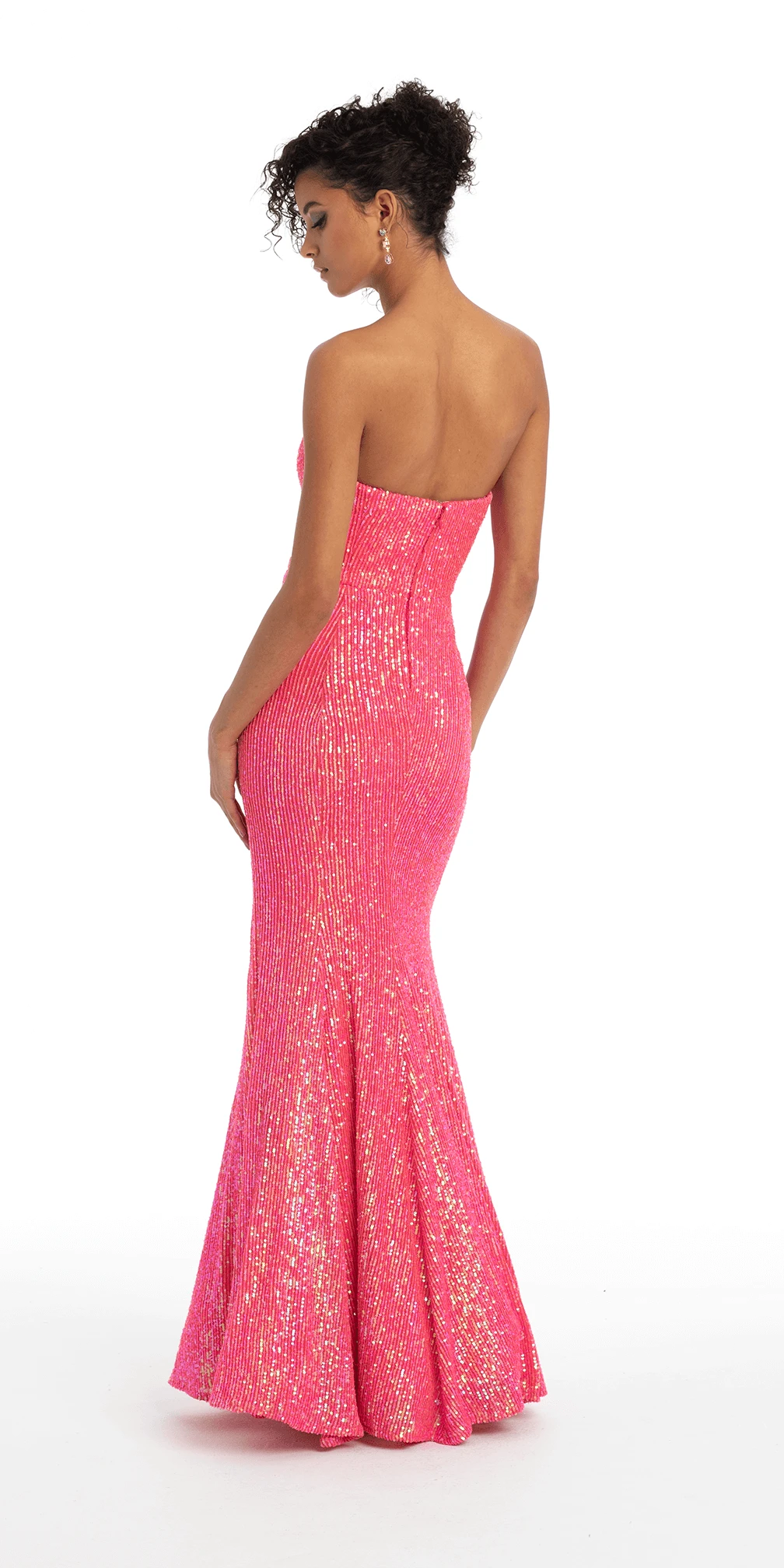 Sparkle and shine in our stunning neon pink Strapless Sequin Trumpet Dress! This show-stopping piece will take your breath away with its Sweetheart strapless neckline, Fitted bodice, and gorgeous Trumpet silhouette. Plus, a Center back zipper adds the perfect finishing touch. Bring the party to any Prom, evening event, wedding guest, or gala in this beautiful dress. You’ll be an absolute head turner when you don this sweet style! Pair with silver accessories to complete the look!