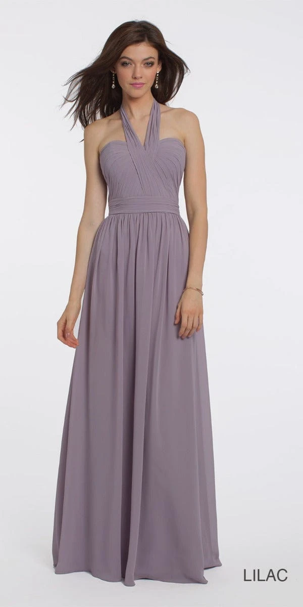 This unique look makes for a flawless bridesmaid dress! With its tie neckline, fitted bodice, A-line chiffon skirt, and center back zipper, this evening gown is wedding party-ready. Pair with nude heels, a rhinestone ring, and a gold clutch.