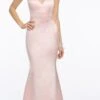 Hello, gorgeous. This trumpet wedding dress is about to steal the show. With its v-neckline, beaded spaghetti straps, fitted embroidered bodice, trumpet skirt, 3-D flower detailing, scoop back, and tulle fabric, this bridal gown is ready for happily ever after. Pair with our petal pink or rose bridesmaid dresses for a delicate finish.