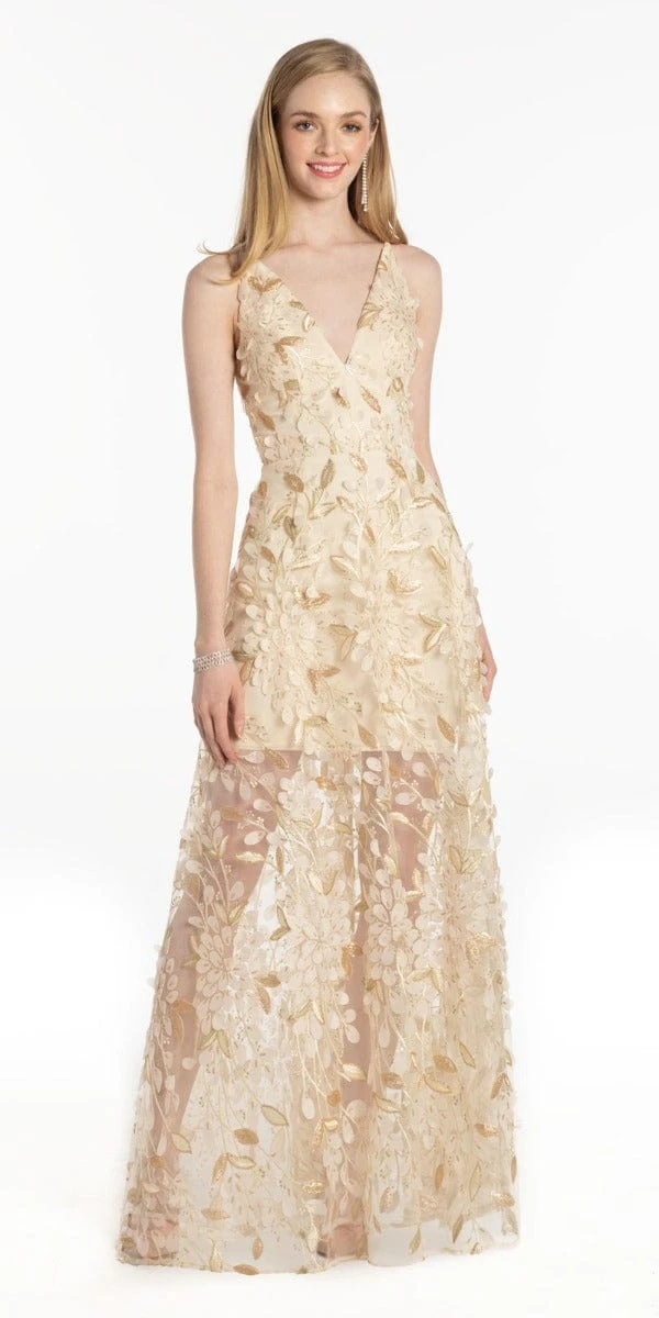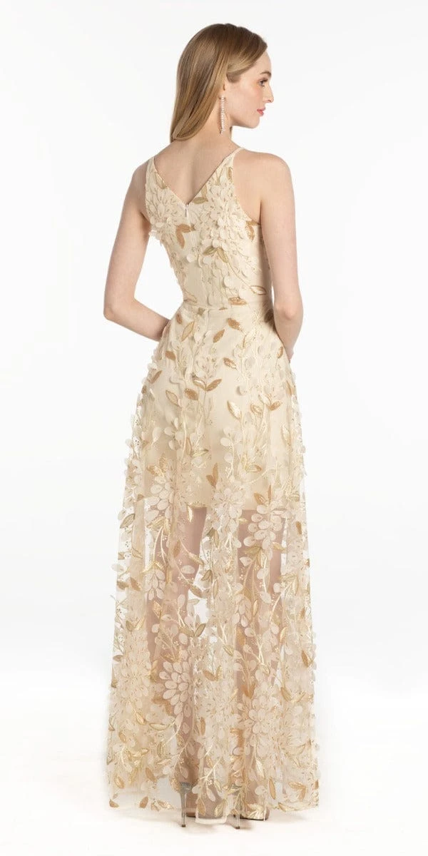 Embody romance in this delicately detailed evening gown! From the V-neck and back to the fitted embroidered bodice and A-line silhouette, this whimsical pick is perfect for outdoor “I do’s” in the months to come. Pair it with neutral tones to dress it down, or add hints of gold to make a glamorous statement.